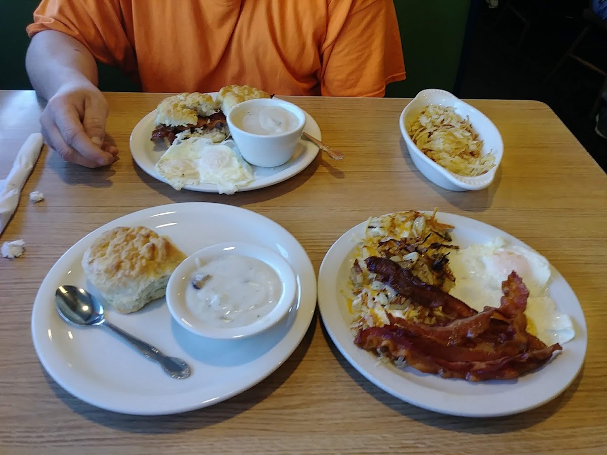 Stopped on the way to St Louis. They were packed but we were lucky to get seated quickly. The server and other staff were extremely efficient and attentive! The eggs, bacon and omelet cooked to perfection. Worth the stop.