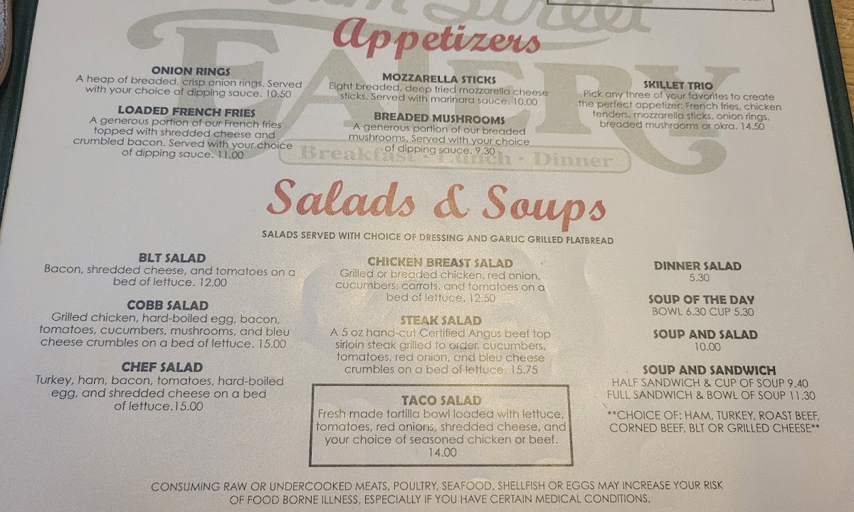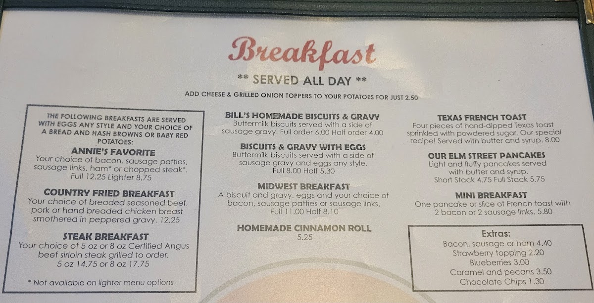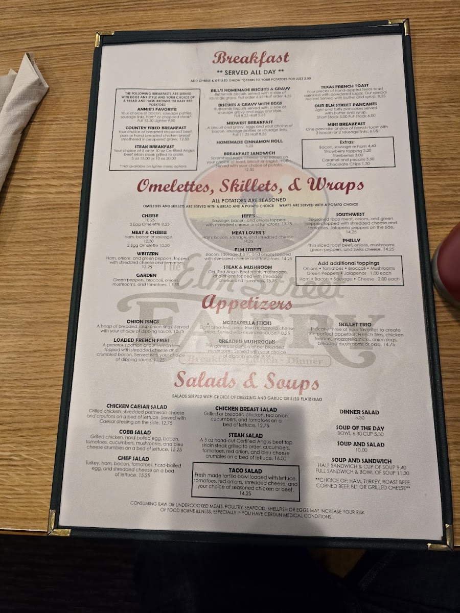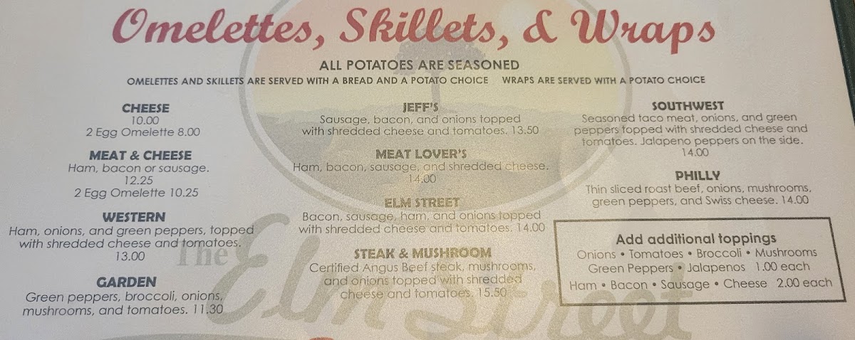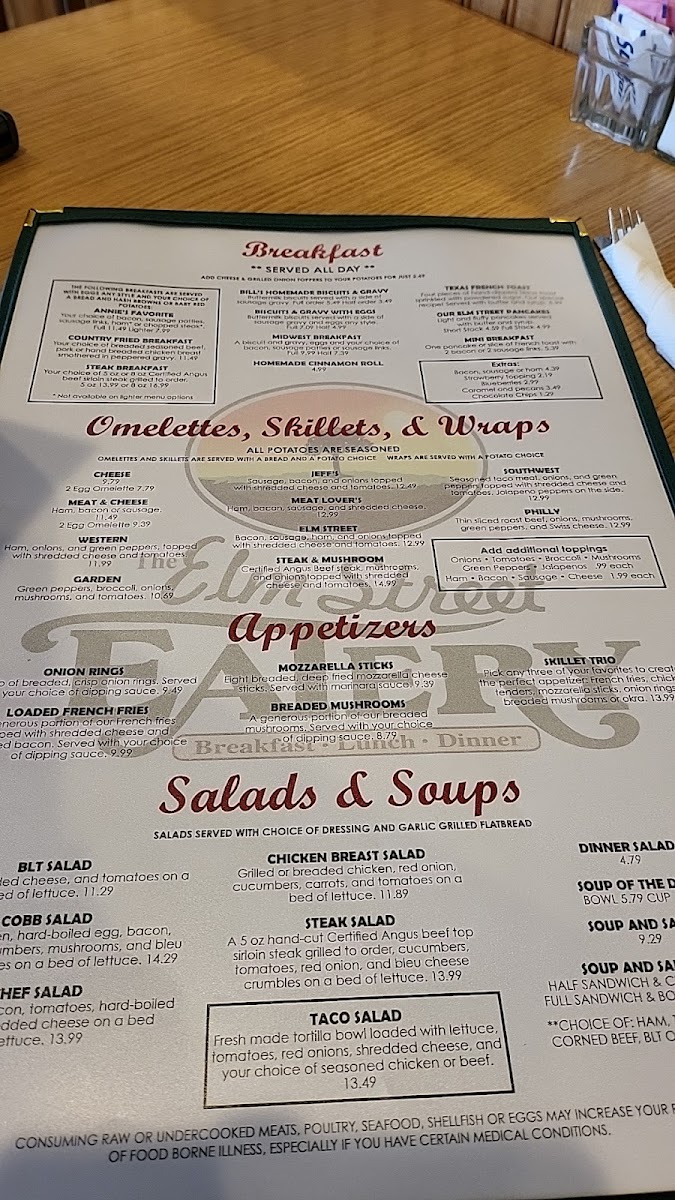 Welcome to The Elm Street Eatery, a beloved American restaurant nestled in the heart of Lebanon, MO. Known for its generous portions and inviting atmosphere, this eatery crafts comfort food favorites that resonate with locals and travelers alike. From the mouthwatering Deluxe Bacon Cheeseburger to the homestyle Meatloaf Dinner, every dish is a testament to quality and flavor. Customers rave about the friendly service and delicious breakfast options like giant pancakes paired with perfectly cooked bacon. With beverages ranging from refreshing raspberry tea to classic soft drinks, there’s something for everyone. The Elm Street Eatery captures the essence of American dining, combining nostalgia with exceptional flavors. Whether you’re visiting for brunch or a hearty dinner, expect a delightful experience that leaves you yearning to return. Don't miss the chance to enjoy this gem at 135 W Elm St!